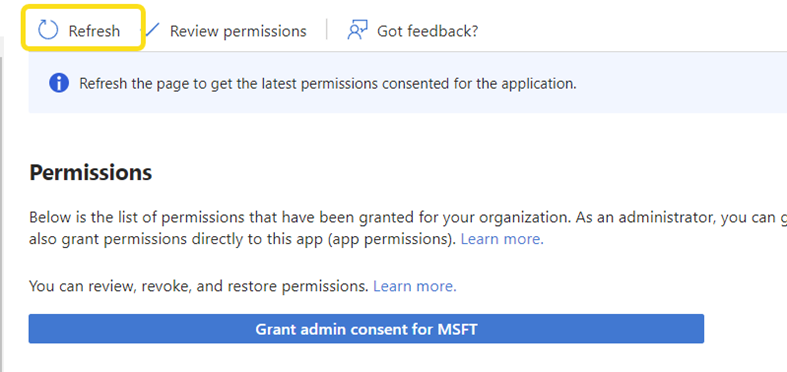 Click the Grant admin consent for MSFT button