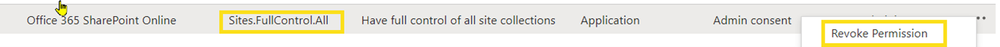 To revoke ‘Sites.FullContol.All’